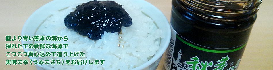 藍より青い熊本の海から採れたての新鮮な海藻でこつこつ真心込めて造り上げた美味の幸(うみのさち)をご賞味ください