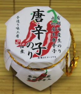 唐辛子のり170g 600円 唐辛子のり170g (tougarashi001) 販売価格¥600在庫状態 : 在庫有り 有明海産の生のり佃煮と九州産の生唐辛子を合わせました。 新鮮な生の唐辛子を使用することで辛味を抑えて濃厚な風味を味わうことができます。 香り豊かな唐辛子のりを是非お試しください。 内容量 170g 賞味期限:製造より200日 数量