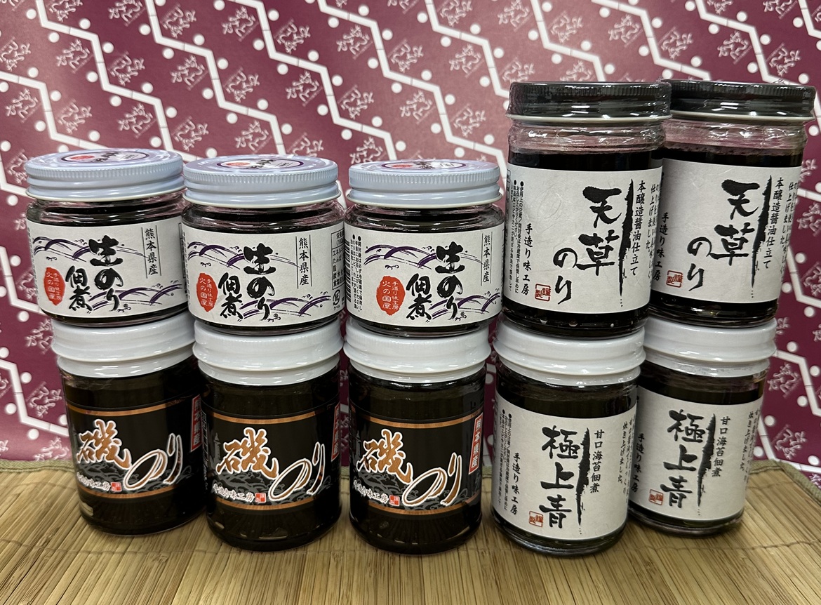 セット内容:磯のり150g3個・生のり佃煮120g3個・極上青150g2個・天草のり2個
