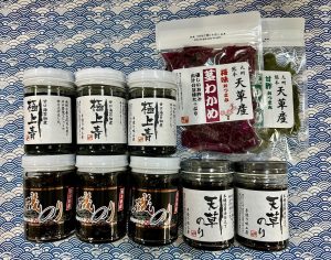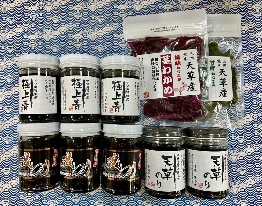 セット内容:磯のり150g3個・極上青3個・天草のり2個・味付茎わかめ・梅味茎わかめ