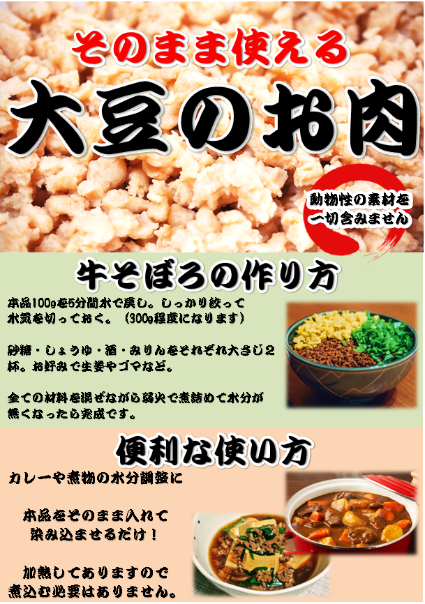 2022年9月14日 / 最終更新日 : 2022年9月14日 ai-kanri 【大豆のお肉】でカラダ作りを! 脱脂大豆で作った「お肉」の登場です。 コレステロールゼロ、低脂肪、高たんぱく質ですので、 運動不足の方や、筋肉量を手軽に増やしたい方にはおすすめです。